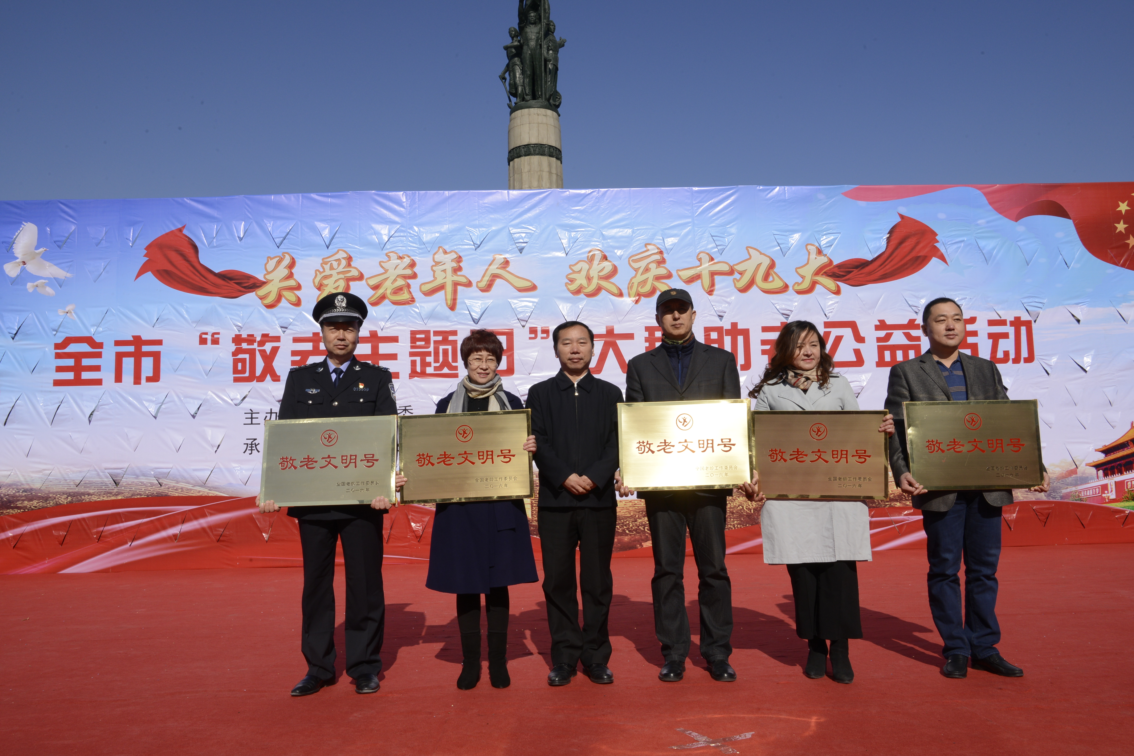 10月17日上午,“关爱老年人,欢庆十九大”敬老主题日大型助老公益活动在防洪纪念塔隆重举行。来自市老龄委成员单位助老公益服务队、老年书画研究会会员、各区老龄工作者和老年人代表上千人参加。