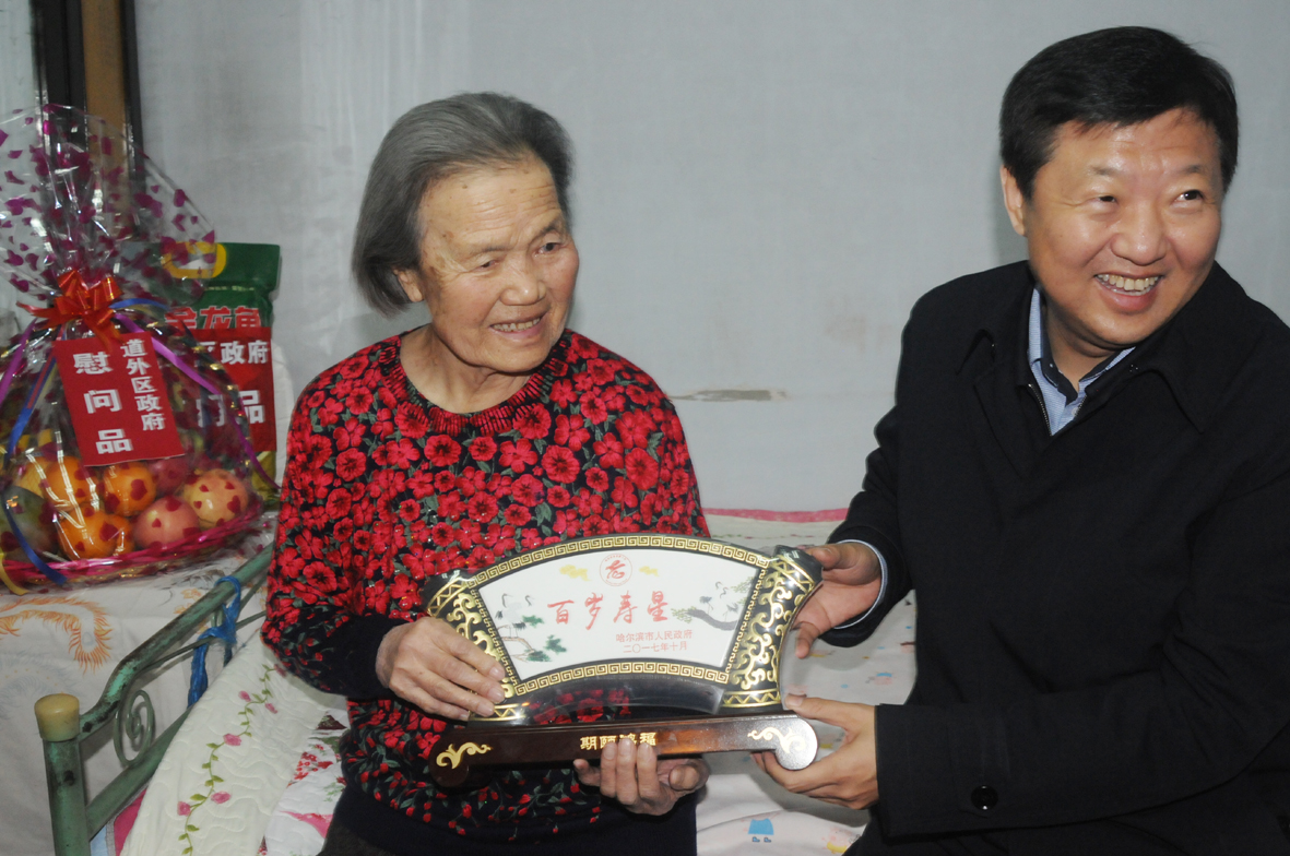 在重阳佳节暨全国第五个“老年节”即将到来之际,昨天下午,市委副书记、市长宋希斌看望慰问了困难老人王秀桂、百岁老人吴瑞白以及道外区铁四社区居家养老服务中心的老人们,为他们送上了市委、市政府的温暖祝福和殷殷关怀。市委常委、副市长柳士发参加慰问。