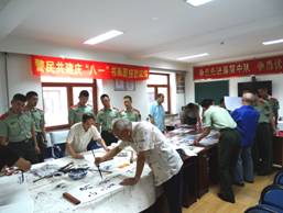 [2017好图片评选]道里区兆麟社区老年协会携手市委武警中队开展“迎八一书画剪报联谊”活动
