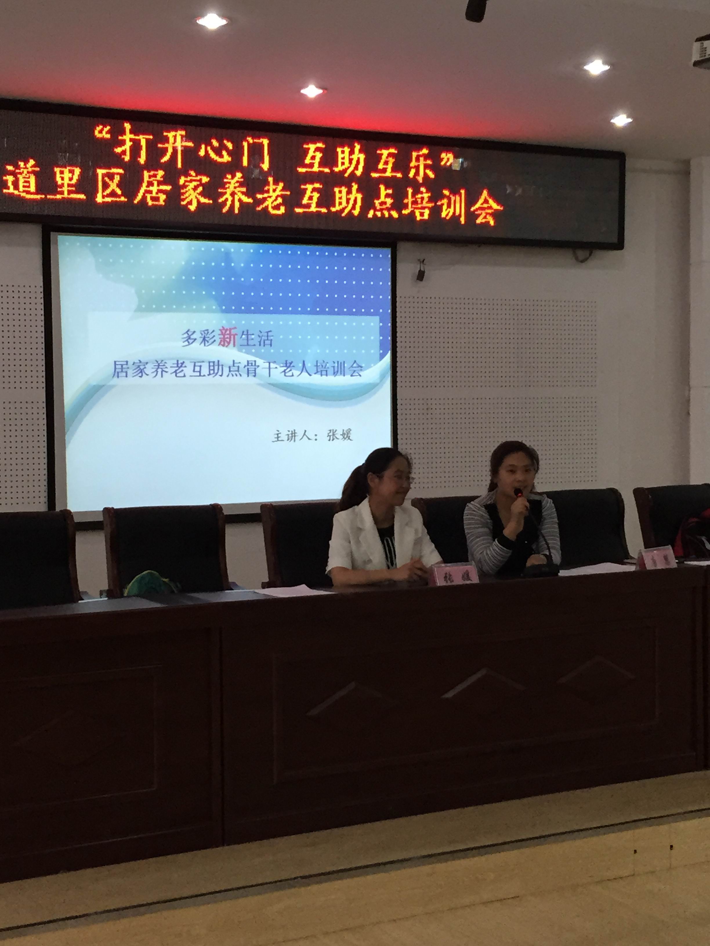 为解决居家老人在家无人陪伴,无精神慰藉等问题,道里区去年已建成50户居家养老互助点,经过一年的发展,居家养老互助点内很多特色互动小组应运而生,普遍受到老年人的欢迎。今年,道里区在去年实践基础上,继续组建50个特色居家养老互助点,互助点老年人申请时根据自身爱好选择以手工制作、中医养生、音乐合唱、书法绘画、茶艺插花、摄影技巧等二十余项互动内容进行活动。通过互助点和社会组织定期送知识,将老人组织到社区学院,邀请专业老师相继开展以摄影、茶艺、插花、电子琴、沙画、扎染、养生、花棍、易拉花、串珠、黑陶等共12大项课程系列培训会,整个培训会培训时间长达半年。重点培养有专长、爱好广泛的互助点内骨干老人,互助点骨干老人可根据自己和互助点内活动的老人兴趣爱好报名学习课程内容,再将这些技艺通过互助点传授给老人们,提升老人的内在、使老人老有所乐的基础上有质的提升,达到辐射带周边、扩散式学习效应。今年道里区也与黑龙江省希望社会工作服务中心合作,将社工组织加入到居家养老互助点中,社工与互助点内老人建立帮扶小组,向老人传授如何调动周边老人积极性、将互助点良好发展,吸引更多老人参与。互助点的开展丰富了老人的文化生活,增加群体间的交往,树立健康生活理念,倡导积极乐观的生活态度,使道里区老年人都能够老有所学。真正将居家养老互助点发展成为道里区独有的移动大课堂。