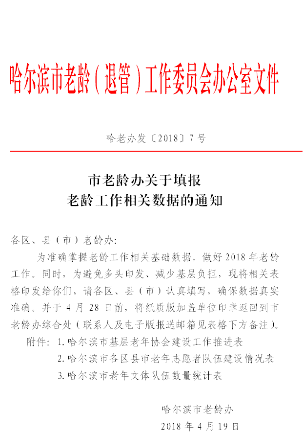 市老龄办关于填报老龄工作相关数据的通知