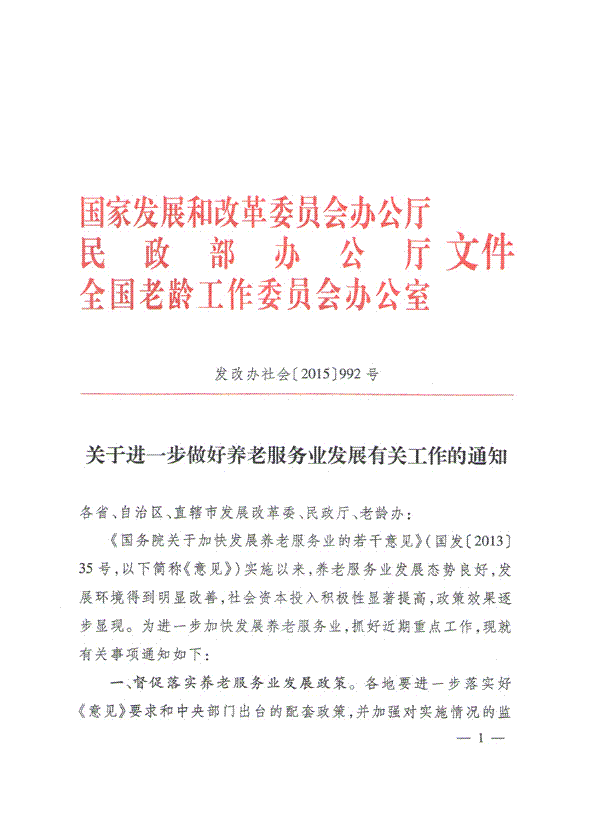 《国务院关于加快发展养老服务业的若干意见》(国发〔2013〕35号,以下简称《意见》)实施以来,养老服务业发展态势良好,发展环境得到明显改善,社会资本投入积极性显著提高,政策效果逐步显现。为进一步加快发展养老服务业,抓好近期重点工作,发展改革委、民政部、全国老龄办联合印发了《关于进一步做好养老服务业发展有关工作的通知》(以下简称《通知》)。