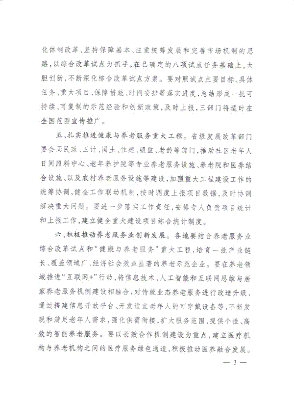 《通知》强调要统筹推进养老服务业综合改革试点、扎实推进健康与养老服务重大工程建设、积极推动养老服务业创新发展。