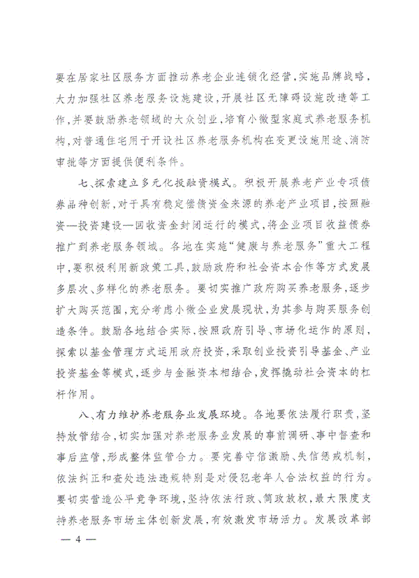 《通知》要求要探索建立多元化投融资模式,有力维护养老服务业发展环境。